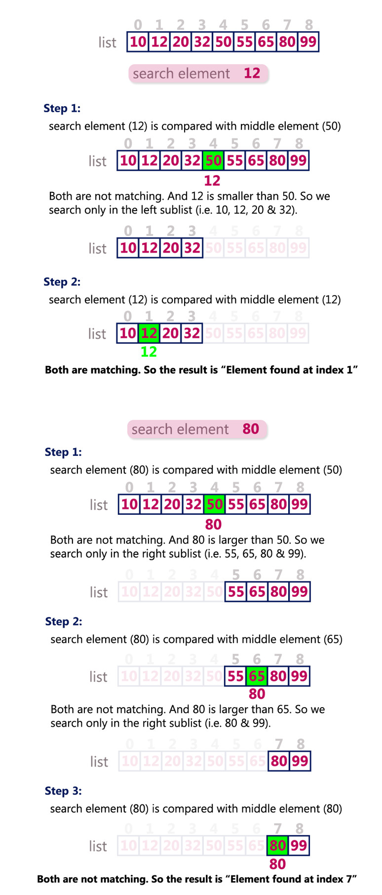 - Step 8 - Repeat the same process until we find the search element in the list or until sublist contains only one element.